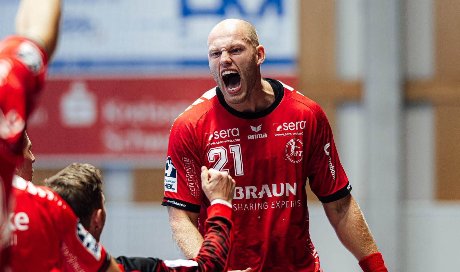 Aber die MT biss, und auf Kristopans war weiterhin Verlass. Der 2,15 Meter Hüne glänzte mit klasse Zuspielen an den Kreis, und er traf. Bezeichnend, dass er mit seinem sechsten Tor den 19:19-Ausgleich erzielte (44.) und wenig später die 21:20-Führung (47.) nachlegte. Und als auch noch Nebojsa Simic prächtig gegen Kühn und kurz danach einen Siebenmeter von Gonzalo Perez parierte, kochte die Rothenbach-Halle und feierte den MT-Keeper.