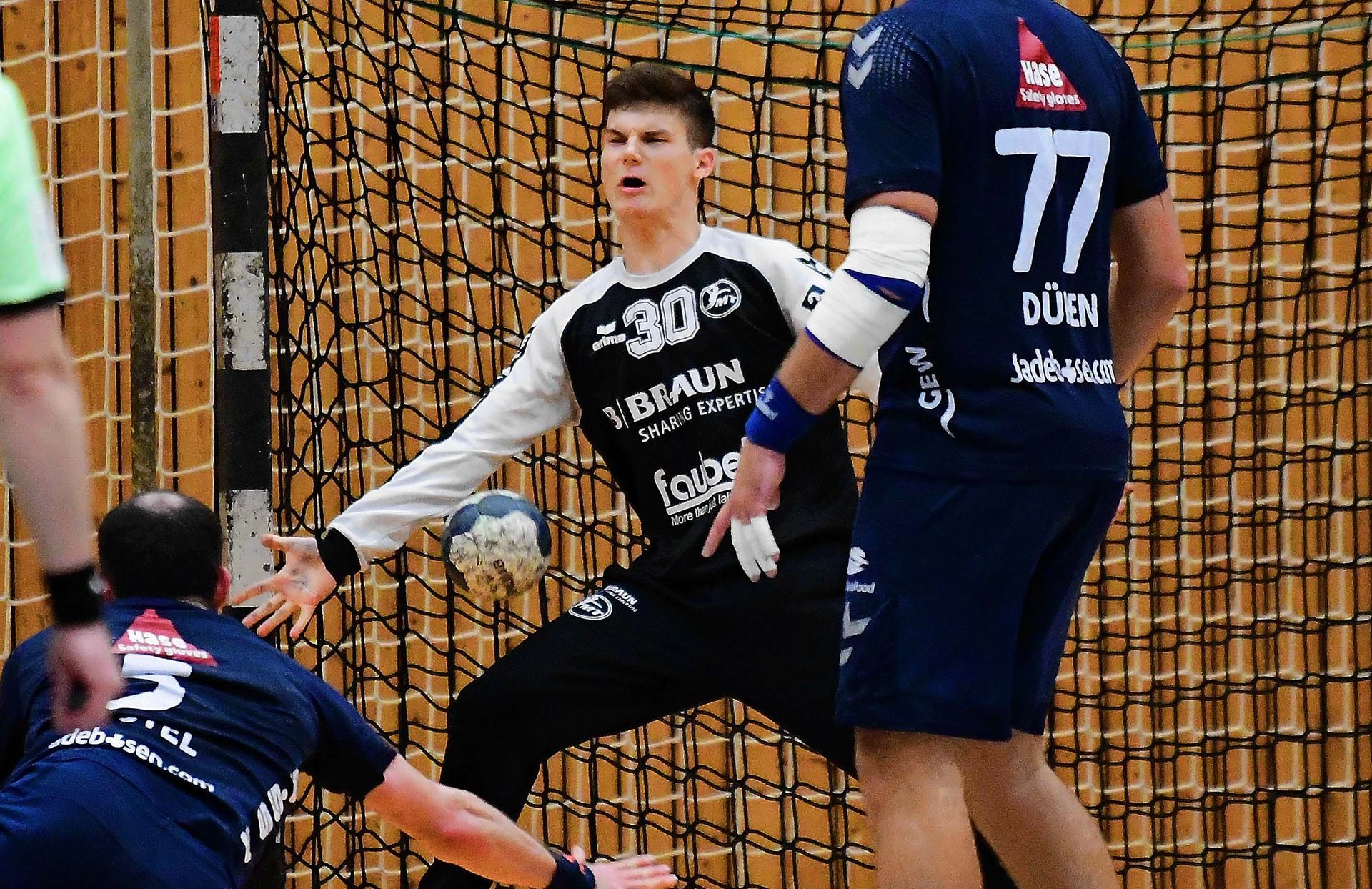 Dabei bezwangen die Rot-Weißen neben dem Gegner in gewisser Weise erst einmal sich selbst und die eigenen Unzulänglichkeiten. Denn eigentlich hätte das schnelle 1:0 den Melsungern sofort Sicherheit geben müssen. Die Deckung hatte dem ersten WHV-Angriff erfolgreich die Stirn geboten, Merlin Kothe im Gegenzug nach 75 Sekunden die Führung erzielt. Dem war aber nicht so. Weil sich Lasse Ohl unmittelbar danach die erste Zeitstrafe abholte und die Norddeutschen das mit all ihrer Routine zu nutzen wussten. Drei Tore in Überzahl, weitere zwei noch bevor sich die MT 2 wieder finden konnte – Auszeit von Trainer Arjan Haenen nach nur knapp sieben Minuten beim Stand von 1:5.