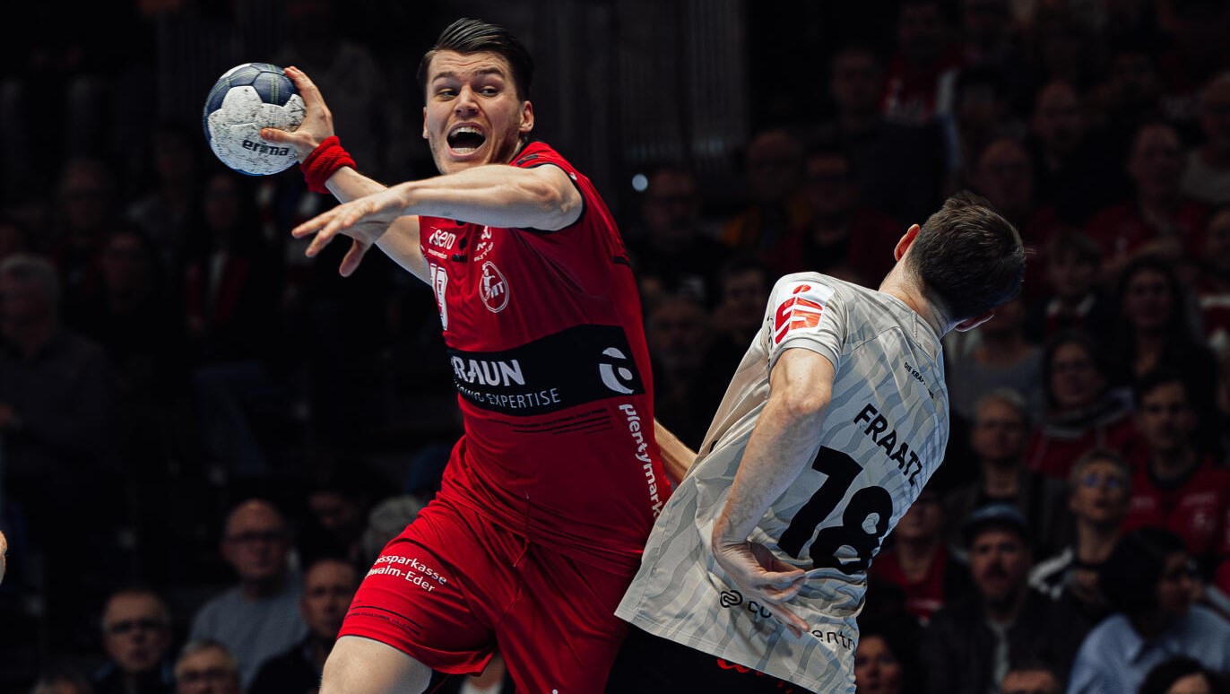 Die ständigen Vorlagen der Gäste blieben, die zuverlässigen Antworten Melsungens ebenfalls. Und auch das gute Händchen Parrondos. Der hatte nach der Pause David Mandic links und Timo Kastening rechts von der Bank gebracht. Während Mandic mit seinem schon zweiten Volltreffer den Ausgleich zum 20:20 (44.) besorgte, brauchte Kastening den Anlauf eines zweiten verworfenen Siebenmeters gegen Rudeck, um dann doch zu vollstrecken: Das erste Tor des Tages vom Kapitän bedeutete nach genau einer Dreiviertelstunde mit dem 21:20 die erste Führung für die MT – und das Publikum in Kassel drehte so richtig auf.
