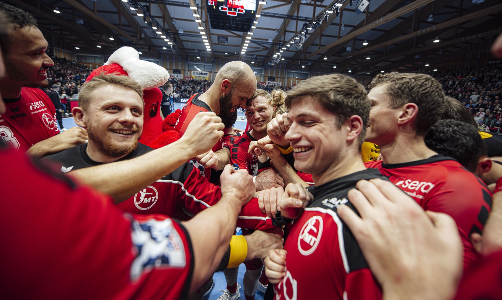 Feierlich festlich schon vor dem Anpfiff. Wozu sicherlich auch die, über den großen Videowürfel von ihm selbst verkündete, Entscheidung beitrug, dass Erik Balenciaga seinen Vertrag bei der MT vorzeitig um zwei Jahre bis 2027 verlängert hat. Der quirlige Mittelmann, der einen hohen Anteil am attraktiven Spiel der Nordhessen hat, bleibt also noch lange Zeit erhalten. Was unter den Fans ausnahmslos Begeisterung auslöste.
