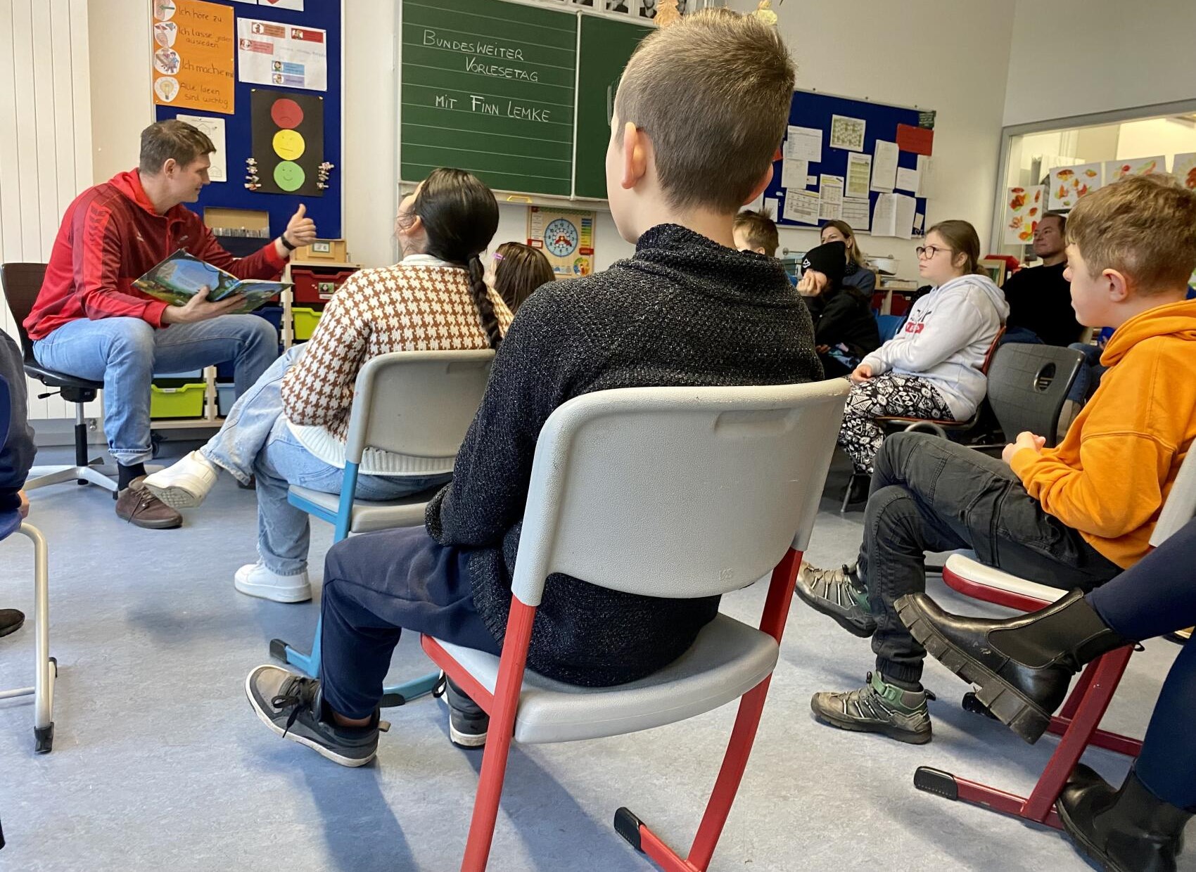 Am bundesweiten Vorlesetag hat sich auch die MT Melsungen engagiert, und zwar in Person von Finn Lemke. Der Ex-Profi war zu Gast in einer Hofgeismarer Förderschule und hatte ein Buch seines Freundes Pascal Hens im Gepäck.