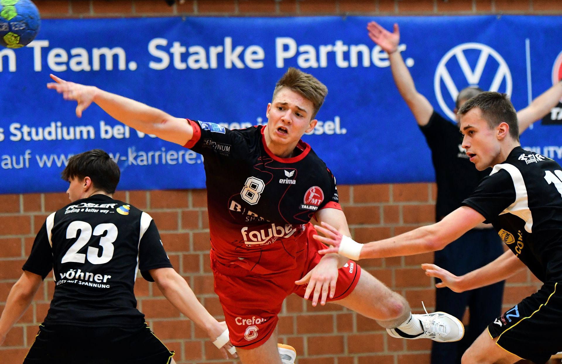 Der Rest war eigentlich Schaulaufen beider Mannschaften. Es ging munter hin und her, wobei die MT Talents durchaus noch Hochphasen für sich verbuchen konnten. Zum Beispiel, als Tom Wolf, Lukas Schröder und, natürlich, Oleksii Tsymbaliuk als Melsungens Bester an diesem Nachmittag, mit einem 3:0-Lauf binnen zwei Minuten auf 17:25 (42.) verkürzten. Gleiches gelang noch einmal durch erneut Tsymbaliuk, Lino Duketis und Jason Wilfer zum 21:29 (50.). Es half aber nichts mehr, die Oberfranken hatten auf alles, auch auf ein zwischenzeitliches 7-gegen-6 mit zwei Kreisläufern und die offene Manndeckung in den Schlussminuten die passende Antwort.