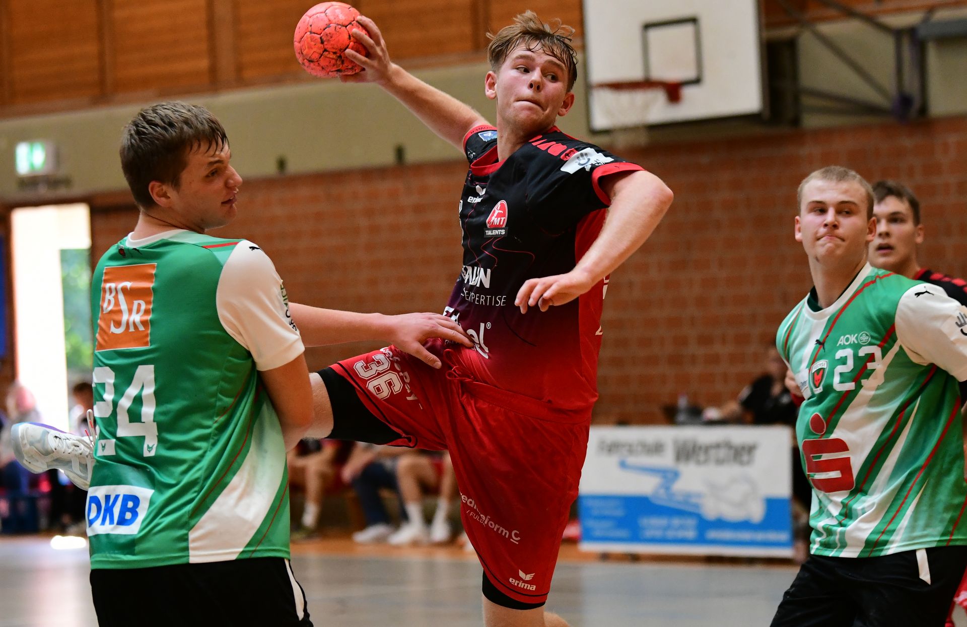 Respekt vor dem haushoch favorisierten amtierenden Deutschen Meister? Gibt’s nicht. Keinen Linkshänder im rechten Rückraum? Braucht’s nicht. Zwei Riesen im gegnerischen Innenblock? Dazwischen sind mindestens drei Zentimeter Platz, mehr will ich nicht. Was die MT Talents da in den ersten fünf Minuten gegen die Füchse zeigten, war schon allererste Sahne. Im Einzelnen. Den Rückstand gleich zu Beginn egalisierte Rechtshänder Jost Liebergesell über die halbrechte Position und brauchte keine 20 Sekunden, um über genau die gleiche Position das 2:1 hinterherzuschicken. Dann sah sich in der Mitte Edin Fitozovic vor einer schier unüberwindlichen Mauer, fand aber die minimale Lücke: 3:1. Klasse, was die Melsunger da auf die Platte zauberten.