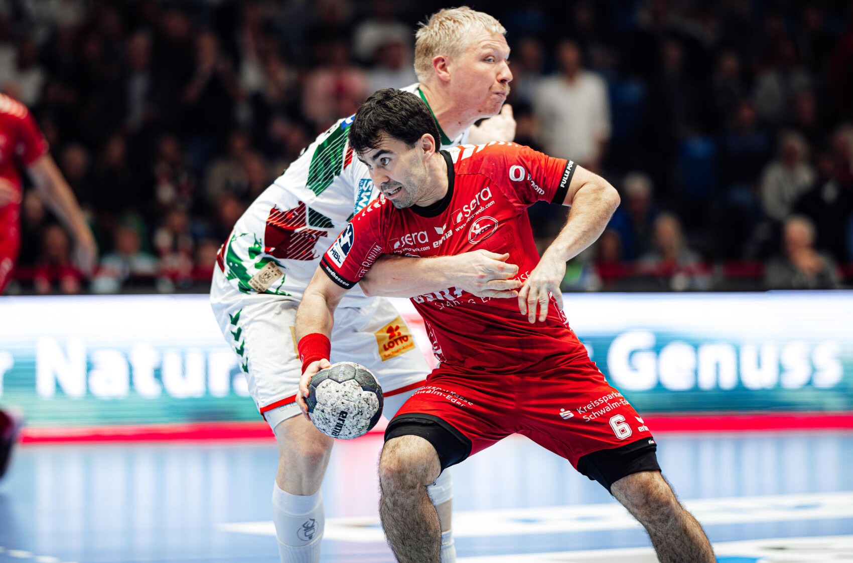 Unser Foto oben zeigt eine Szene aus dem Hinspiel: MT-Spielmacher Erik Balenciaga setzt sich gegen Magdeburgs Magnus Saugstrup zur Wehr.