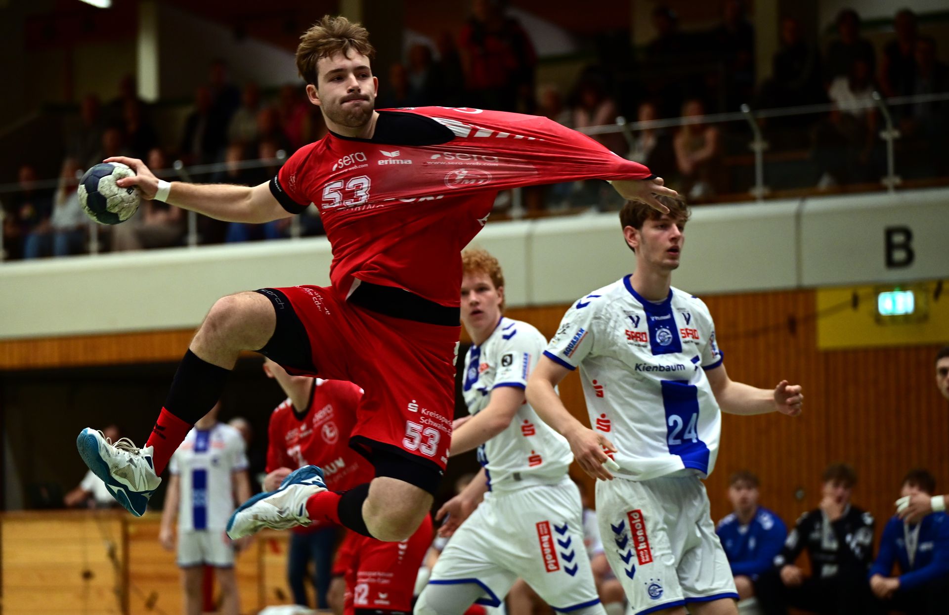 Und hatte Folgen. Positive aus Sicht der Rot-Weißen, bei denen Jakob König dreimal innerhalb kürzester Zeit traf und die Basis legte für den nächsten kurzen Spurt der Nordhessen. Der führte hin zum 21:17 (47.), das Leon Stehl reaktionsschnell aus der eigenen Hälfte erzielte, als das gegenüberliegende Tor wegen einer Zeitstrafe gerade leer war. Und dennoch war auch das noch längst kein Ruhekissen. Zweimal zu spät dran in der Abwehr, zwei Siebenmeter, zwei Gegentore, wieder nur noch zwei dazwischen.
