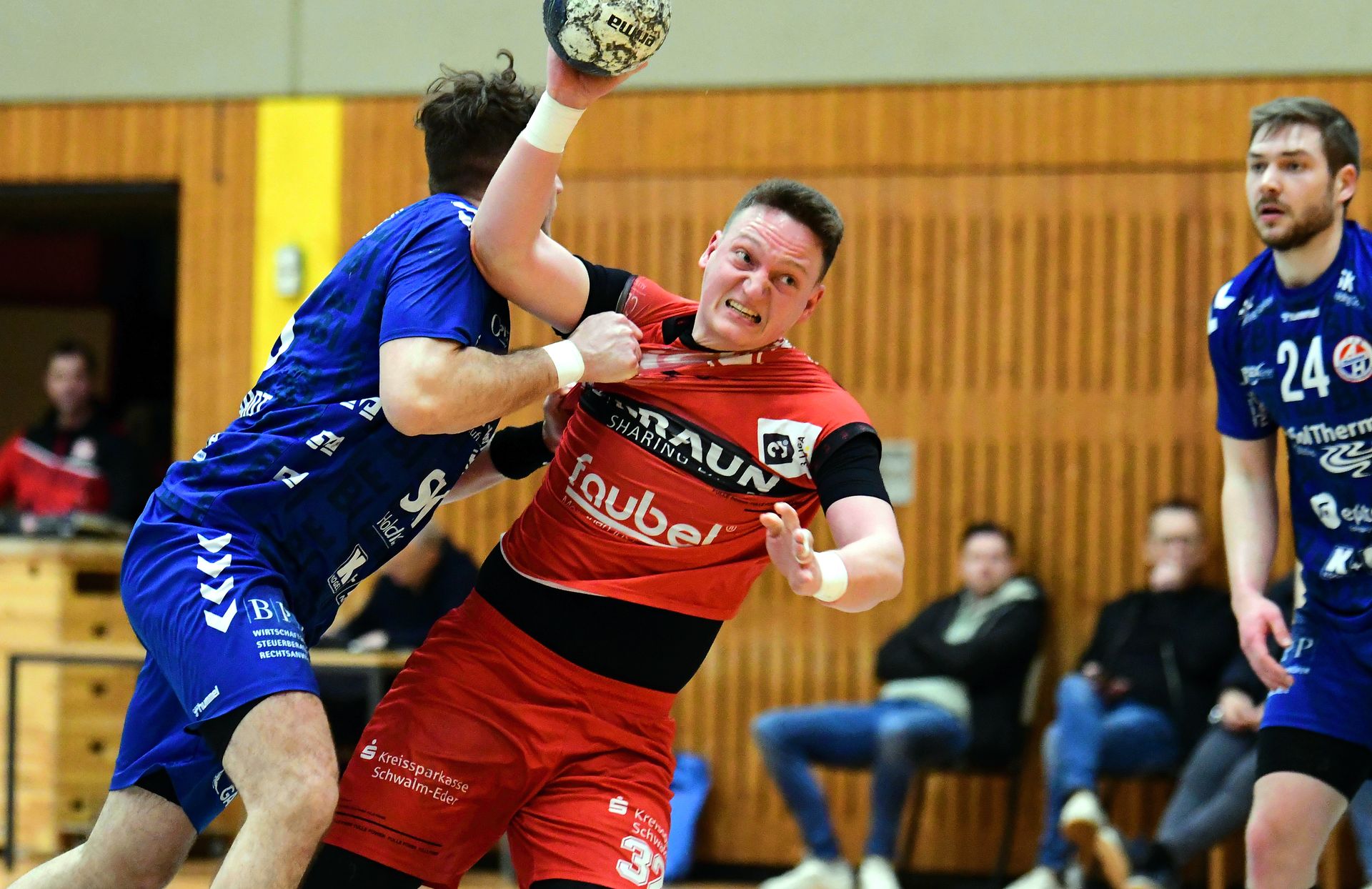 Dabei blieb es aber nicht. Jetzt, wo der Rücken etwas freier war und mit Ben Beekmann frischer Wind auf den linken Flügel kam, wirkte das ganze Spiel der Hausherren leichter. Bis auf 23:18 (46.) durch das nächste Empty-Net-Goal von Florian Weiß bauten die Rot-Weißen aus. Um dann jedoch unvermittelt an Struktur zu verlieren. Wozu sicher die auf 3:3 umgestellte offensive Deckung der Bielefelder beitrug. Unter dem Strich aber waren es mehrere individuelle Fehler im Angriff, die den Nordhessen das Leben unversehens wieder schwer machten.