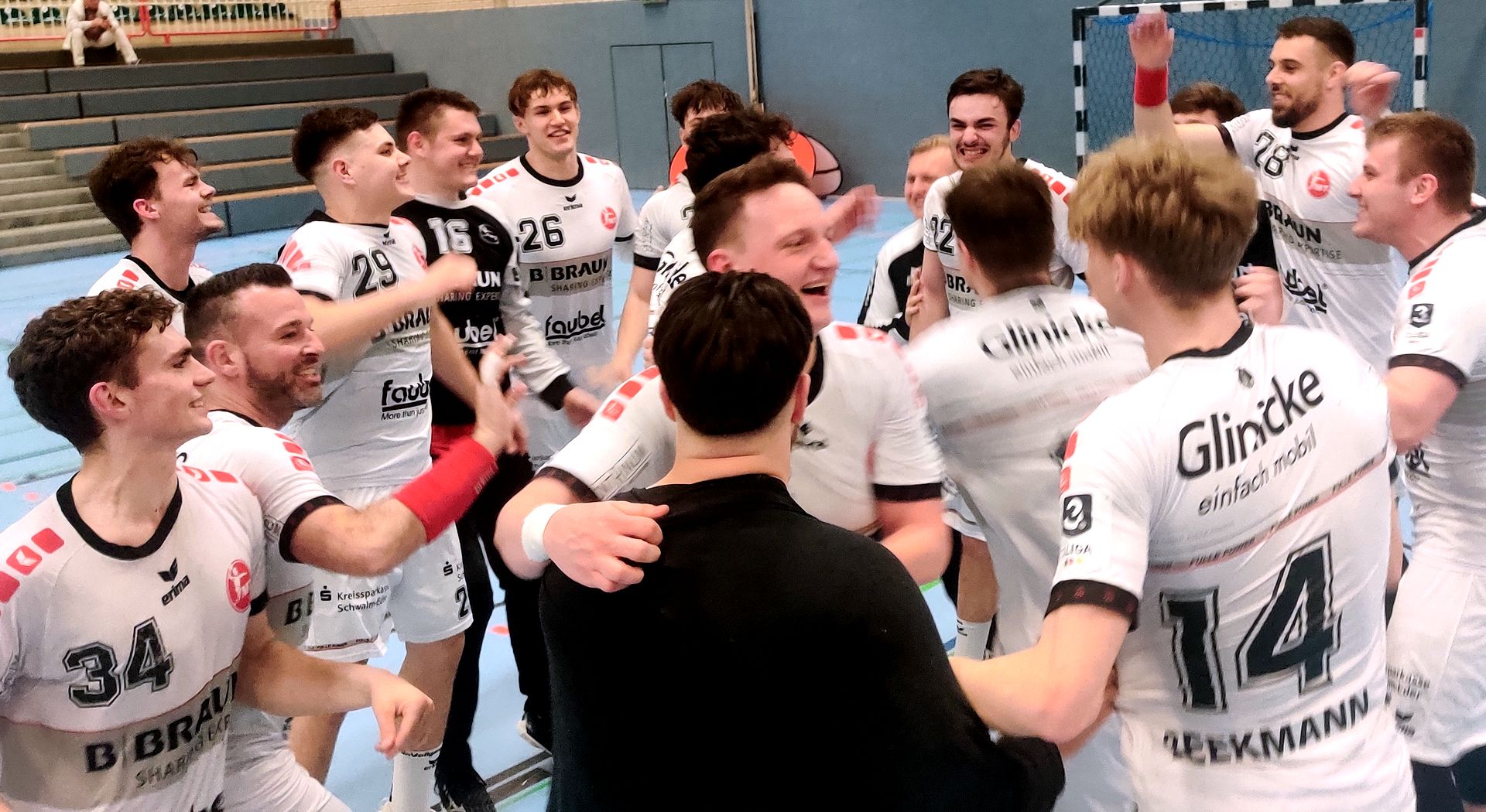 Die Melsunger schwammen in dieser Phase zwar und ließen vorn allerbeste Einwurfmöglichkeiten ungenutzt, behielten hinten aber jederzeit die Köpfe oben. Weil sie Jan Lasse Herbst hinter sich wussten, der mit seinen Paraden zehn und elf schnell wieder für Ruhe auf den Rängen sorgte. Ben Beekmann machte schließlich den Deckel drauf und gab damit den Startschuss für kollektiven Melsunger Jubel. Nicht nur wegen des Sieges in fremder Halle, sondern vor allem mit Blick auf die übermittelte Niederlage Großenheidorns in Wilhelmshaven und den damit verbundenen sicheren eigenen Klassenerhalt.