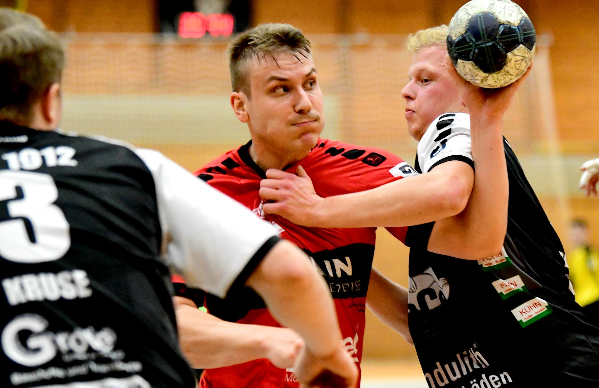 Die logische Folge: Alle optische Überlegenheit nutzte nichts, auch der mühsam erarbeitete Vorsprung schwand dahin. Die Ostwestfalen spielten ihren Stiefel runter und kamen überwiegend durch ihre Rückraumschützen Marko Bagaric und vor allem Ole Günther zu Treffern gegen oftmals viel zu passiv stehende Rot-Weiße. Vier Tore am Stück, davon allein drei durch Günther, ließ die Begegnung zum 11:8 (19.) kippen. Und die Wellen schwappten direkt weiter munter hin und her. Nach endlich einmal hochkonzentriert durchgespielten zweieinhalb Minuten mit vierfachem Grund zum Jubel war die MT 2 nochmal vorn, zur Pause aber erneut LIT. Konstanz bei einer der beiden Mannschaften? Fehlanzeige!