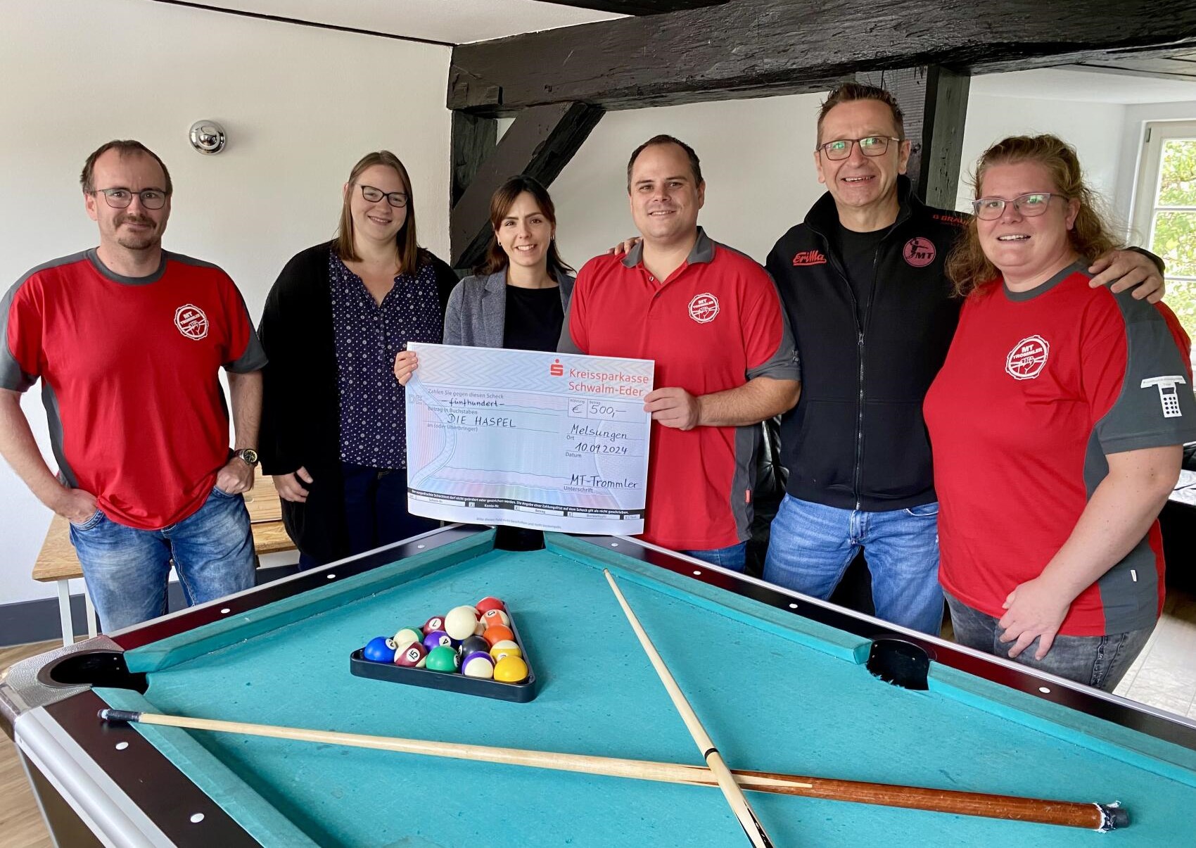 Die Haspel freut sich über eine Spende in Höhe von 500 Euro. Die MT-Trommler, einer der Fanklubs des Handball-Bundesligisten, haben im Auftrag aller MT-Fanklubs dem Melsunger Jugendtreff symbolisch einen Scheck überreicht. Das Geld stammt von der Becher-Spender-Aktion, die in der Vorsaison ins Leben gerufen wurde. Bei Heimspielen der MT sammeln die Fanklubs die Getränkebecher in eigens angefertigten Spendern und nutzen den Pfand für besondere Zwecke.