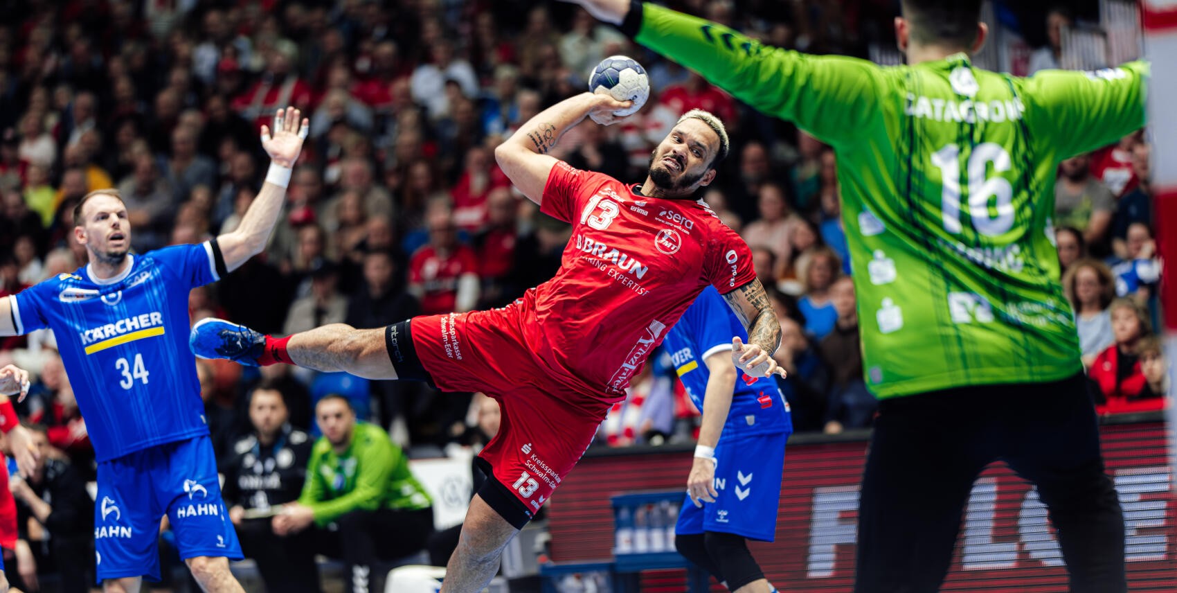 Doch was der eine Kreisläufer kann, vermag auch der andere zu liefern. Moraes nämlich, der es seinem Gegenüber nachmachte und mit seinen Treffern fünf und sechs flugs zurück auf 23:18 (41.) stellte. Dazu noch ein gehaltener Strafwurf von Simic, ein trockener Abschluss von Kristopans ins kurze untere Eck und ein Kastening-Tempogegenstoß – Melsungen war nach einer Dreiviertelstunde auf sieben weg.