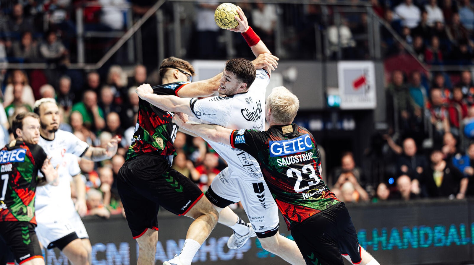 Gipfeltreffen also vor 6.600 Zuschauern in der ausverkauften Getec-Arena, und die Gastgeber legten mit Felix Claar und Matthias Musche vom Siebenmeterstrich einen Blitzstart hin – 2:0, da waren keine zwei Minuten gespielt. Die Gäste aus Nordhessen antworteten direkt in Person von Ian Barrfuet, der ebenfalls per Siebenmeter verwandelte, sowie Dainis Kristopans, der seinen ersten von vier Treffern in der ersten Hälfte erzielte.