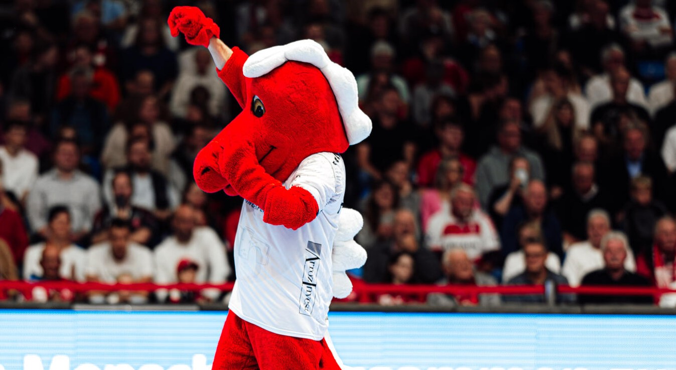 Unser Foto zeigt MT-Maskottchen Henner in Aktion in der Rothenbach-Halle. (Foto: Käsler)