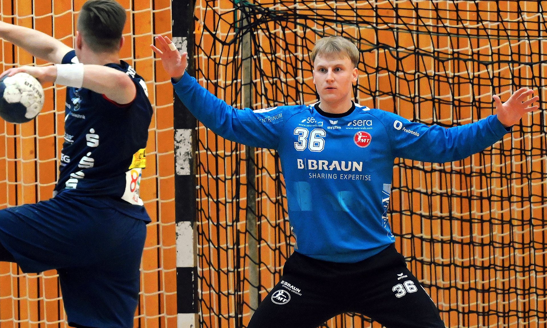 War das der ersehnte Befreiungsschlag? Die MT Melsungen 2 trotzte weiteren kurzfristigen Ausfällen und bezwang nach herausragender kämpferischer Leistung das HLZ Ahlener SG mit 32:29 (18:16). Grundlage dazu waren starke Angriffsleistungen von Tom Wolf und Jonas Riecke sowie ein Pawel Krawczyk (Foto: Heinz Hartung) in bester Simic-Manier im Tor.