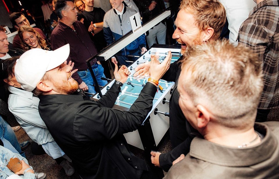 Vorstandssprecher Andreas Mohr war es wichtig, nicht nur den Sponsoren, sondern auch allen Helfern für die Unterstützung zu danken. Ein besonderes Lob erhielt MT-Marketingleiter Björn Fischer, der das Sommerfest organisiert und auf die Beine gestellt hatte. Dazu gehörte abermals ein Kickerturnier, das MT-Profi Dimitri Ignatow mit seinem Team gewann. Für die musikalische Unterhaltung sorgten DJ P.EWood und Sänger Franco Di Garzia, das köstliche Sommerbuffet hatten die Fliegenden Köche frisch zubereitet.