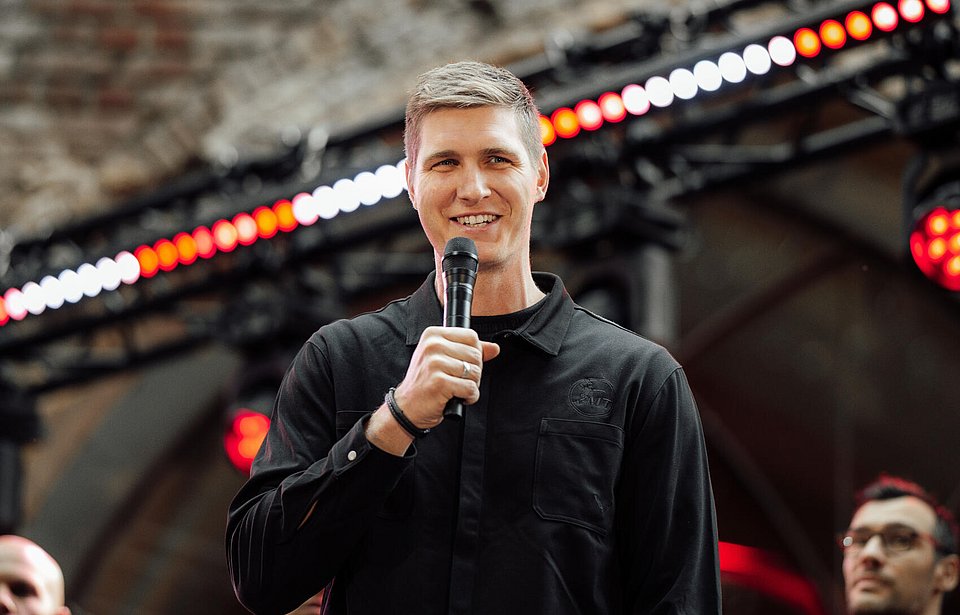 Aber zurück zum Warm-up, wie die Veranstaltung offiziell hieß: Rund 350 geladene Gäste erlebten Finn Lemke als Moderator. Der 33 Jahre alte Ex-Profi und Co-Trainer führte am Mikrofon durch den Abend und überzeugte in dieser Rolle, was Sportvorstand Michael Allendorf zu folgender Aussage brachte: „Finn, jetzt wissen wir, welche Aufgabe du noch zusätzlich bei der MT übernehmen kannst.“