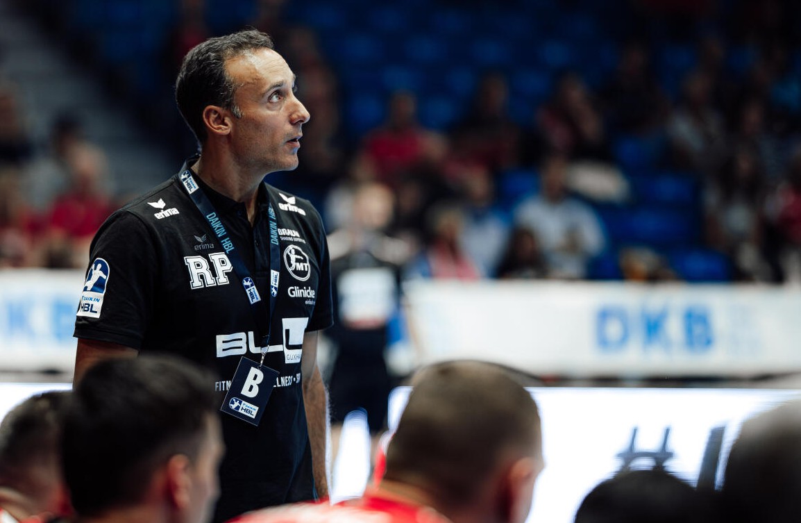 MT-Trainer Roberto Garcia Parrondo (Foto: Käsler) blickt positiv auf die Herausforderung. Die große Stärke der MT sei bisher die Abwehr gewesen. Gegen Flensburg dürfe seine Mannschaft wenig zulassen. Darauf werde es ankommen. Vor allem müsse das schnelle Gegenstoßspiel der Flensburger gut verteidigt werden.