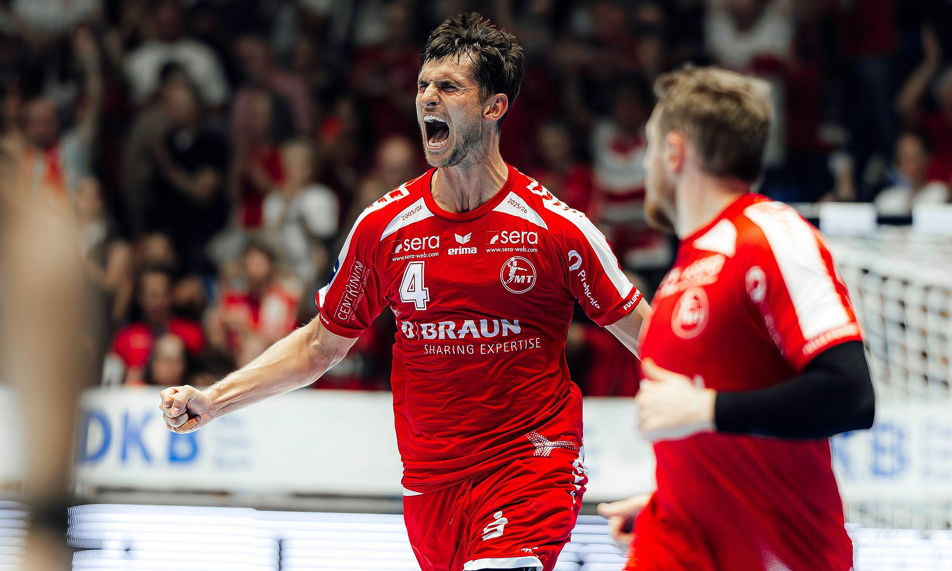 Zerfahren war das Spiel der Gastgeber jedoch in den ersten Minuten. Woran sie selbst nicht ganz unschuldig waren. Hatte Leipzig beim Freiwurf nur noch einen Pass, kam Sadou Ntanzi zu früh nach vorn und kassierte noch vor Ablauf der ersten Minute die erste Strafe. Womit Leipzig wieder viel Zeit hatte und die prompt durch Matej Klima zum ersten Tor des Abends nutzte. Die MT lief also erst einmal Rückständen hinterher und steckte dabei auch die zweite Strafe gegen Olle Forsell Schefvert weg. Als endlich Ruhe reinkam und die Mannschaft wieder vollzählig war, klappte es auch im geordneten Vorwärtsgang: Dainis Kristopans war beim Gegenstoß als erster vorn, wurde mustergültig von Ntanzi bedient und traf zum 4:3 (9.).