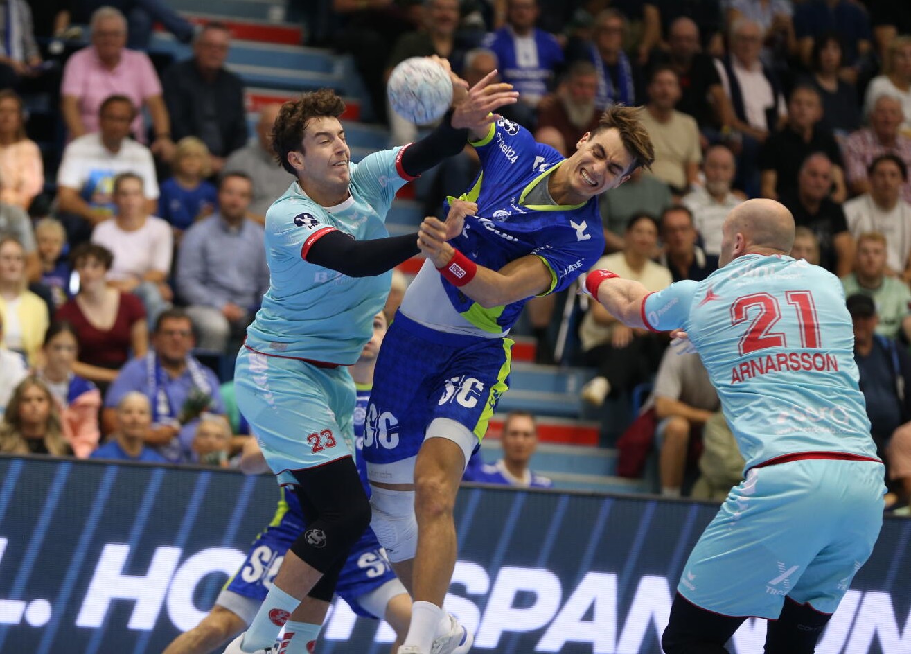 Die Gäste aus Nordhessen machten schnell Bekanntschaft mit der konsequenten Deckung der Gummersbacher. Welch ein Bollwerk. Bis zum 3:3 durch Soler (9.) blieb die MT dran, doch dann häuften sich die Fehler, zu viele Chancen blieben ungenutzt, und der VfL zog nach Joao Gomes‘ Treffer zum 8:4 auf vier Tore davon (17.).