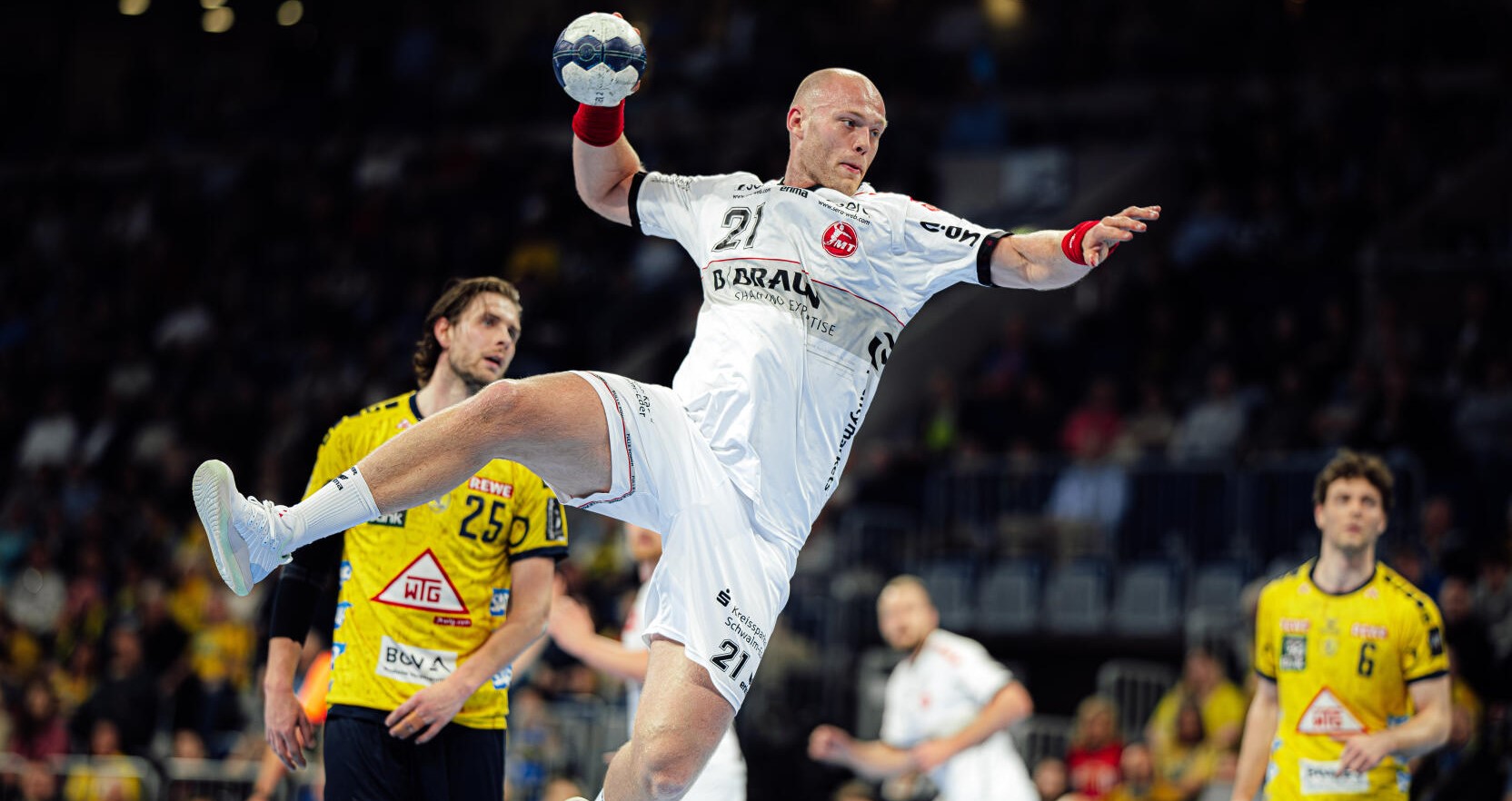 Eine Frage vor der Partie lautete: Wie kommt die MT nach dem Final4-Wochenende zurück in den Liga-Alltag? Trainer Parrondo schickte erst einmal einige Spieler ins Rennen, die in Köln nicht so viel Einsatzzeit hatten. Die Melsunger Startaufstellung sah dann so aus: Im Tor übernahm Morawski für Nebojsa Simic, auf Rechtsaußen durfte Dimitri Ignatow ran, auf anderen Seite David Mandic, Julius Kühn lief ebenso in der ersten Sieben auf wie Sindre Aho, Dainis Kristopans komplettierte den Rückraum, und am Kreis begann Arnar Freyr Arnarsson.