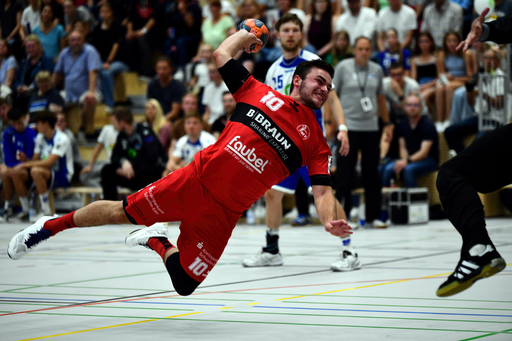 Wie schon angemerkt, erwischte die MT 2 einen veritablen Fehlstart. Torhüter Jannik Büde bekam keine Hand an den Ball, sein Gegenüber Felix Wernlein war sofort voll da. Im Feld setzte Trainer Arjan Haenen auf die Jugend, stellte mit Lasse Ohl, Tom Wolf und Leon Stehl gleich drei A-Jugendliche in die Startformation. Von denen insbesondere Lasse Ohl keinerlei Nervosität oder zu großen Respekt zeigte. Er steuerte, wie auch jeweils Ben Beekmann und Jona Rietze, zwei Tore zum 6:6 (10.) bei. Bis zum 10:11 (Jan Waldgenbach, 22.) blieb Melsungen dran, ließ dann jedoch urplötzlich abreißen. Kurz vor der Pause mit fünf hinten, Leon Stehl und wieder Waldgenbach korrigierten leicht zur Pause.